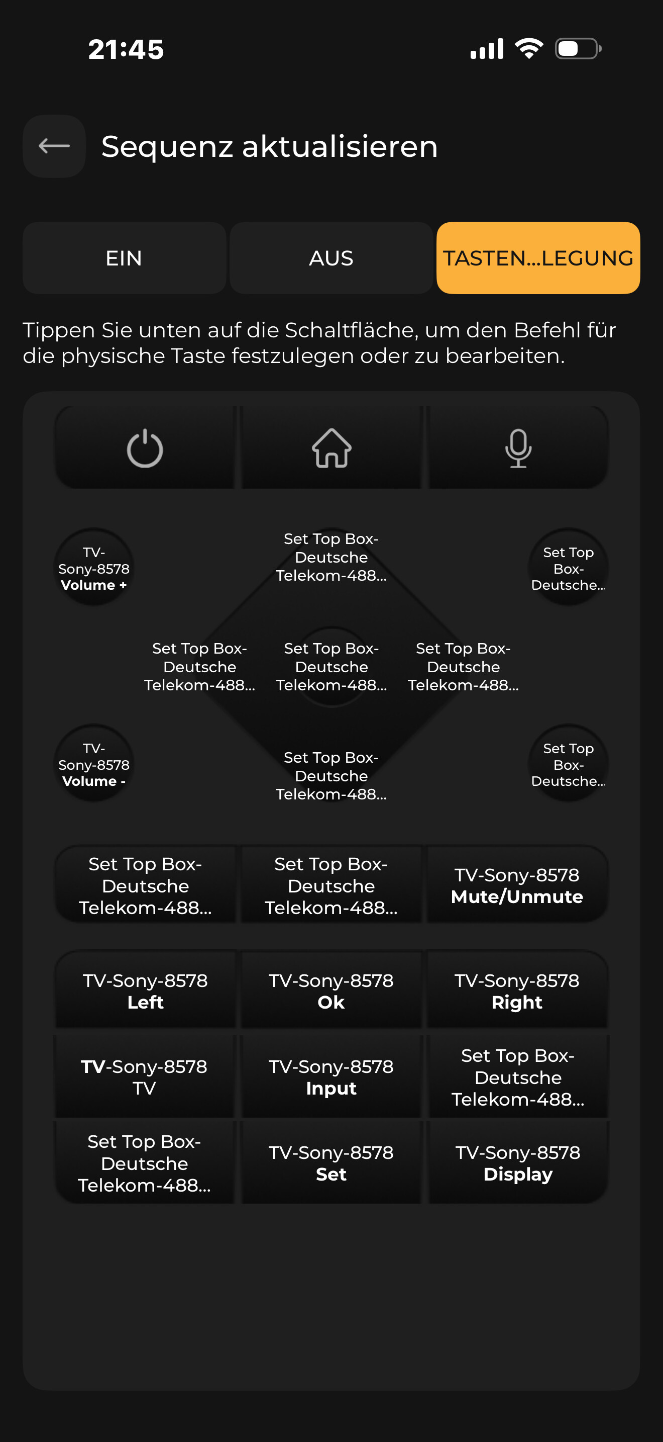Nachdem ich das vorgefertigte Macro Watch TV genommen habe und nicht das benutzerdefinierte, konnte ich auch meinen SkyQ Receiver steuern!