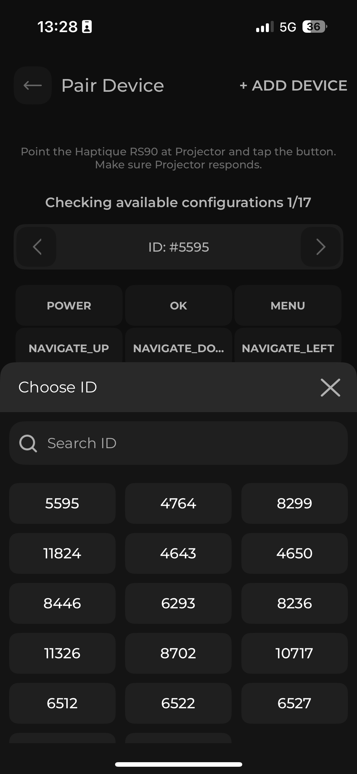 Tap on ID number and find this search menu.